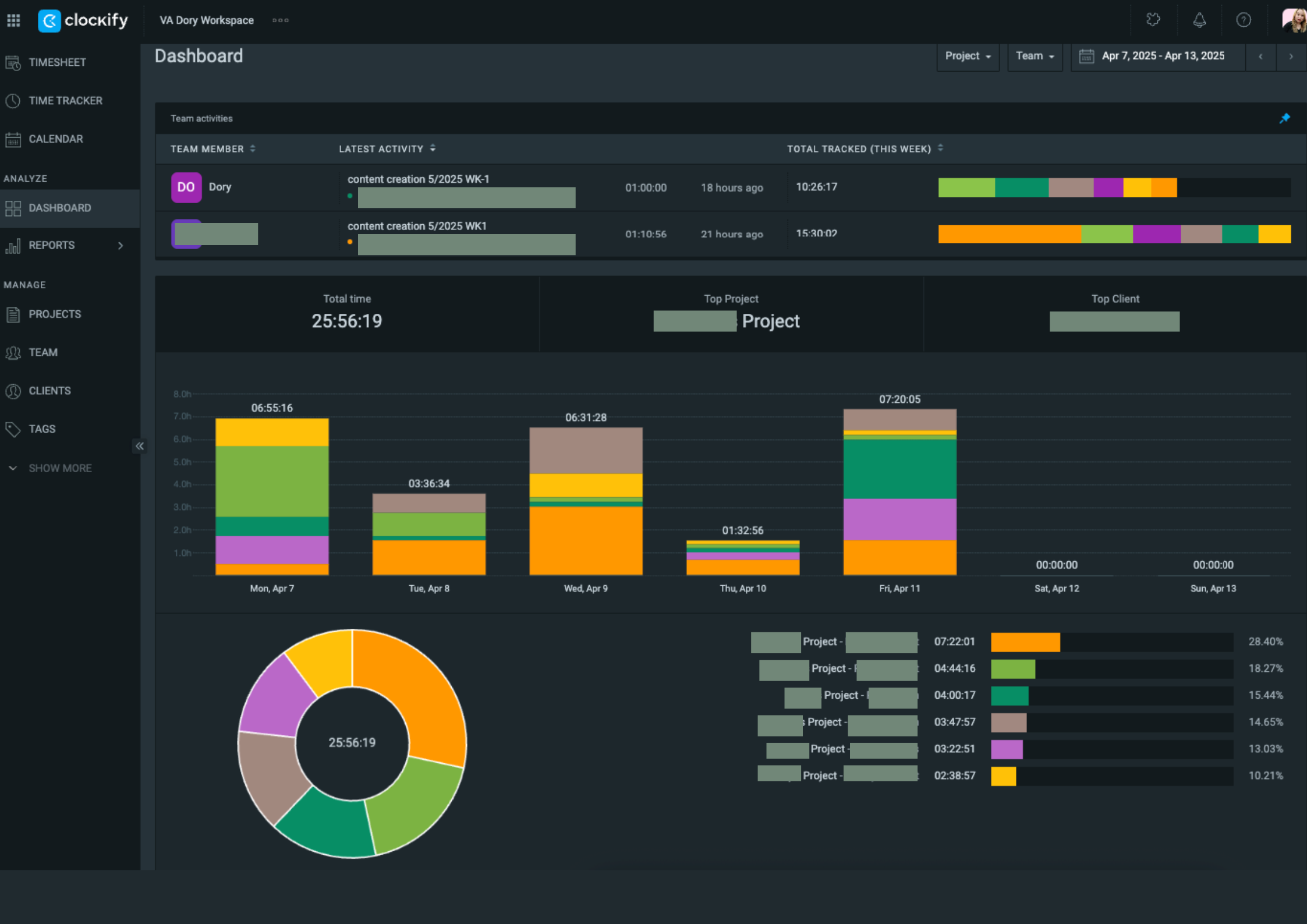 As of this writing, this is how my Clockify dashboard looks: